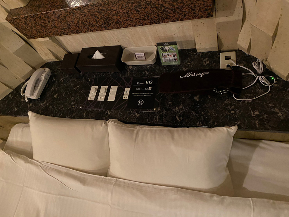 ROOM 102 B-type[別邸] No.102設備 共通設備: NET-TV オーダーシステム システム冷蔵庫 コンビニBOX マット 電子レンジ 電気ケトル 空気清浄機 ハンドマッサージ機 携帯充電器 くるくるドライヤー 和風 畳敷 浴室TV ジェットバス 照明スイッチ(ベッドパネル) クリックすると大きな画像がポップアップします。