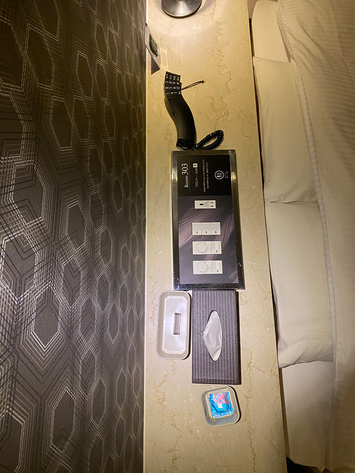 ROOM 303 A-type No.303設備 共通設備: NET-TV オーダーシステム システム冷蔵庫 コンビニBOX マット 電子レンジ 電気ケトル 空気清浄機 ハンドマッサージ機 携帯充電器 くるくるドライヤー スロット 照明スイッチ(ベッドパネル) クリックすると大きな画像がポップアップします。