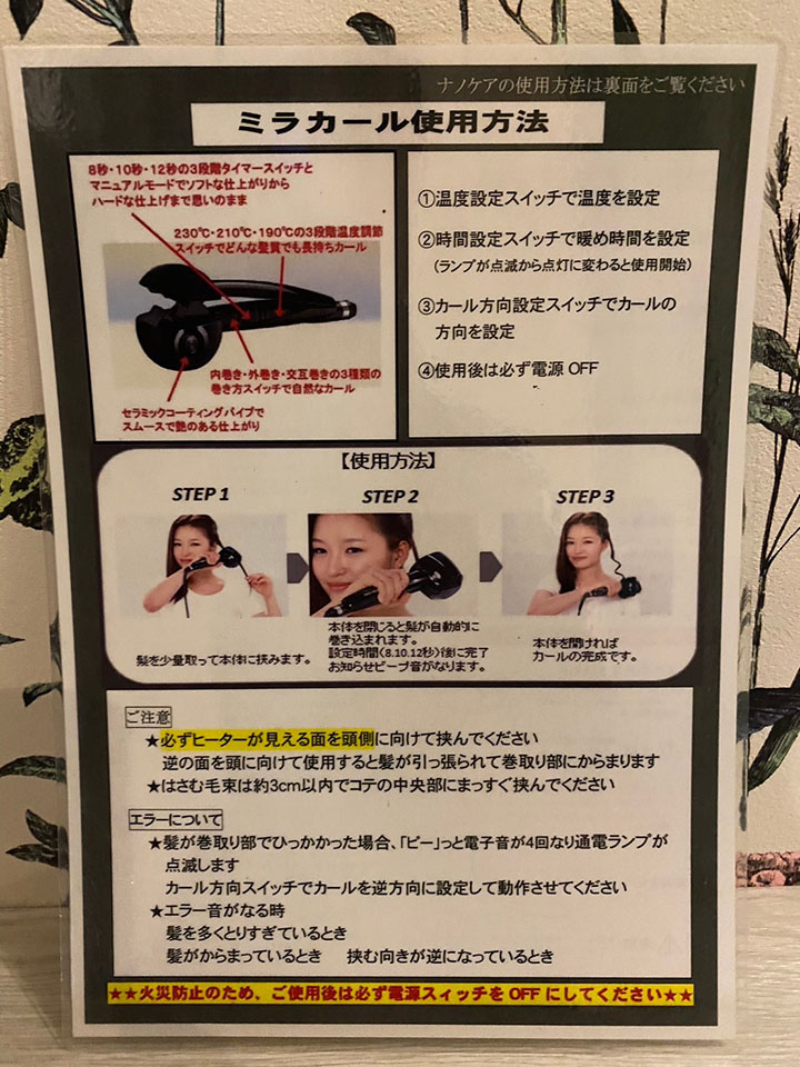 ROOM 501 D-type No.501設備 共通設備: NET-TV オーダーシステム システム冷蔵庫 コンビニBOX マット 電子レンジ 電気ケトル 空気清浄機 ハンドマッサージ機 携帯充電器 くるくるドライヤー エステルーム カラオケ コスメ台 美顔器 スロット 照明スイッチ(ベッドパネル) クリックすると大きな画像がポップアップします。