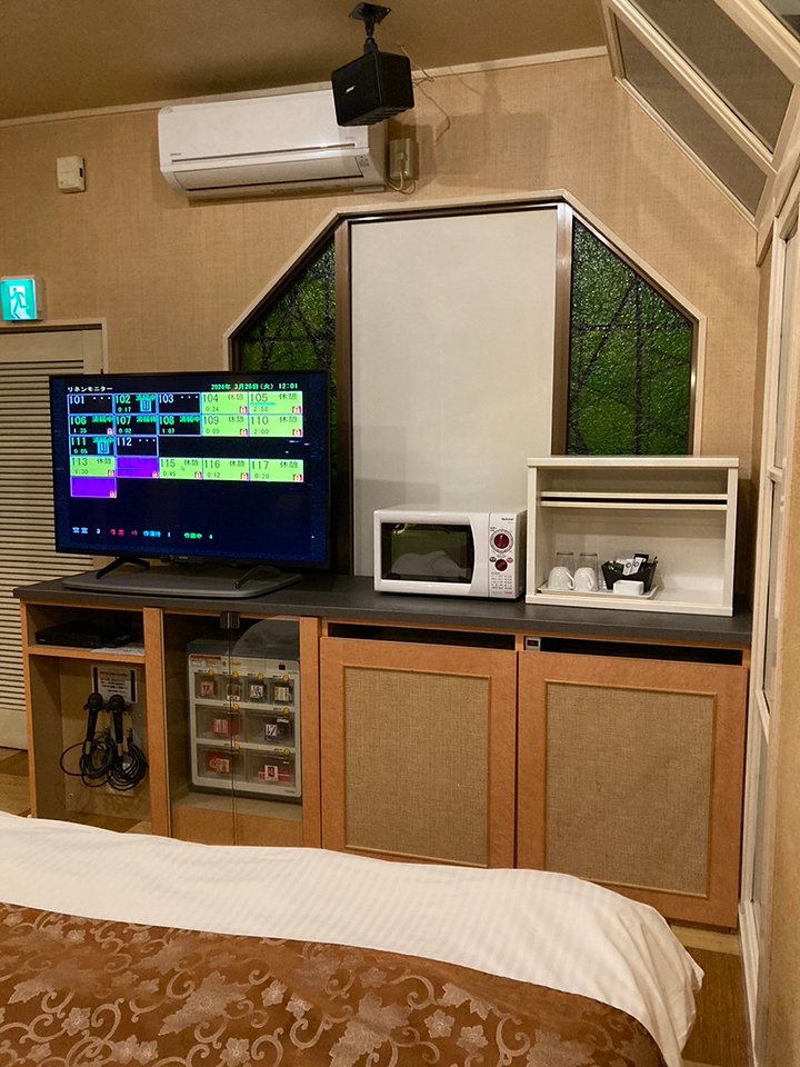 ROOM 102 C-type No.102設備 共通設備: NET-TV オーダーシステム カラオケ コンビニBOX システム冷蔵庫 持込冷蔵庫 電子レンジ 電気ケトル ブルーレイプレーヤー 電マ 加湿器付空気清浄機 携帯充電器 ウォーターサーバー ジェットバス スロットゲーム機(押忍 番長) 照明スイッチ(ベッドパネル) クリックすると大きな画像がポップアップします。