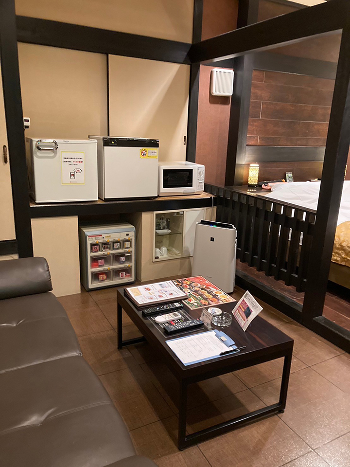 ROOM 103 C-type No.103設備 共通設備: NET-TV オーダーシステム カラオケ コンビニBOX システム冷蔵庫 持込冷蔵庫 電子レンジ 電気ケトル ブルーレイプレーヤー 電マ 加湿器付空気清浄機 携帯充電器 ウォーターサーバー ジェットバス スロットゲーム機(北斗の拳) 照明スイッチ(ベッドパネル) クリックすると大きな画像がポップアップします。