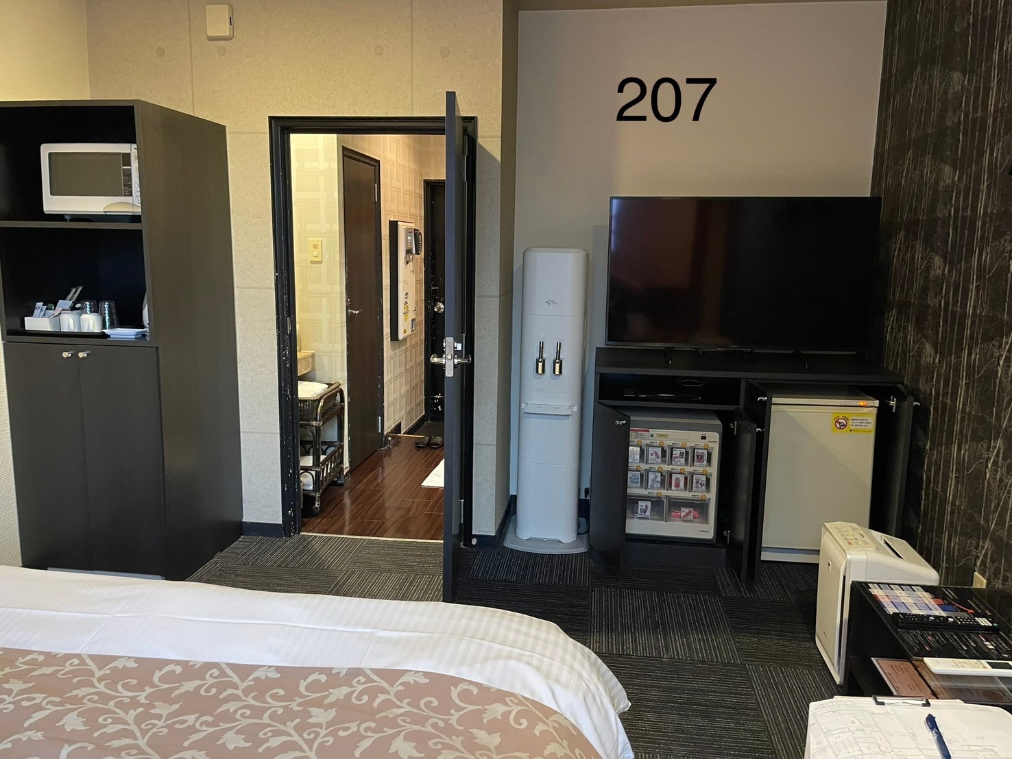 ROOM 207 B-type No.207設備 共通設備: NET-TV オーダーシステム コンビニBOX DVDプレーヤー 空気清浄機 電子レンジ 持込冷蔵庫 電気ケトル くるくるドライヤー ハンドマッサージ器 携帯充電器 ウォーターサーバー 照明スイッチ(ベッドパネル) クリックすると大きな画像がポップアップします。