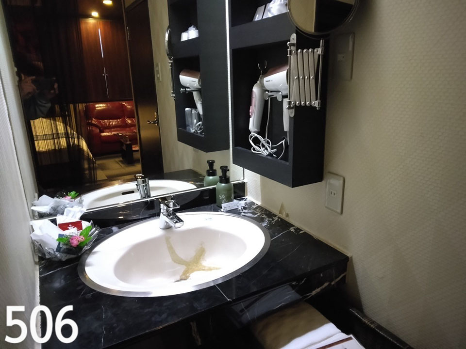 ROOM 506 A-type No.506設備 共通設備: NET-TV オーダーシステム コンビニBOX システム冷蔵庫 持込冷蔵庫 電子レンジ 電気ケトル DVDプレイヤー ハンドマッサージ機 携帯充電器 空気清浄機 ウォーターサーバー 特別設備: セクシーライト 浴室TV スロット 照明スイッチ(ベッドパネル) クリックすると大きな画像がポップアップします。