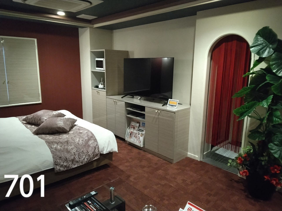 ROOM 701 D-type No.701設備 共通設備: NET-TV オーダーシステム コンビニBOX システム冷蔵庫 持込冷蔵庫 電子レンジ 電気ケトル DVDプレイヤー ハンドマッサージ機 携帯充電器 空気清浄機 ウォーターサーバー 特別設備: マッサージチェア マット セクシーライト ジャグジー 浴室TV スロット 照明スイッチ(ベッドパネル) クリックすると大きな画像がポップアップします。