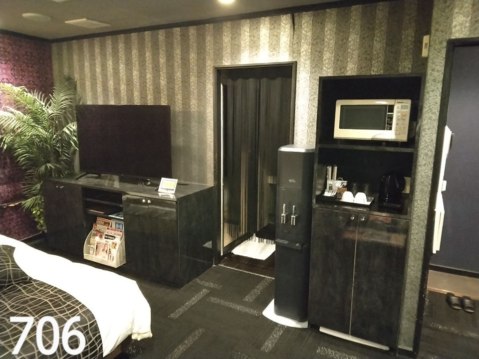 ROOM 706 D-type No.706設備 共通設備: NET-TV オーダーシステム コンビニBOX システム冷蔵庫 持込冷蔵庫 電子レンジ 電気ケトル DVDプレイヤー ハンドマッサージ機 携帯充電器 空気清浄機 ウォーターサーバー 特別設備: セクシーライト ジャグジー 浴室TV スロット 照明スイッチ(ベッドパネル) クリックすると大きな画像がポップアップします。