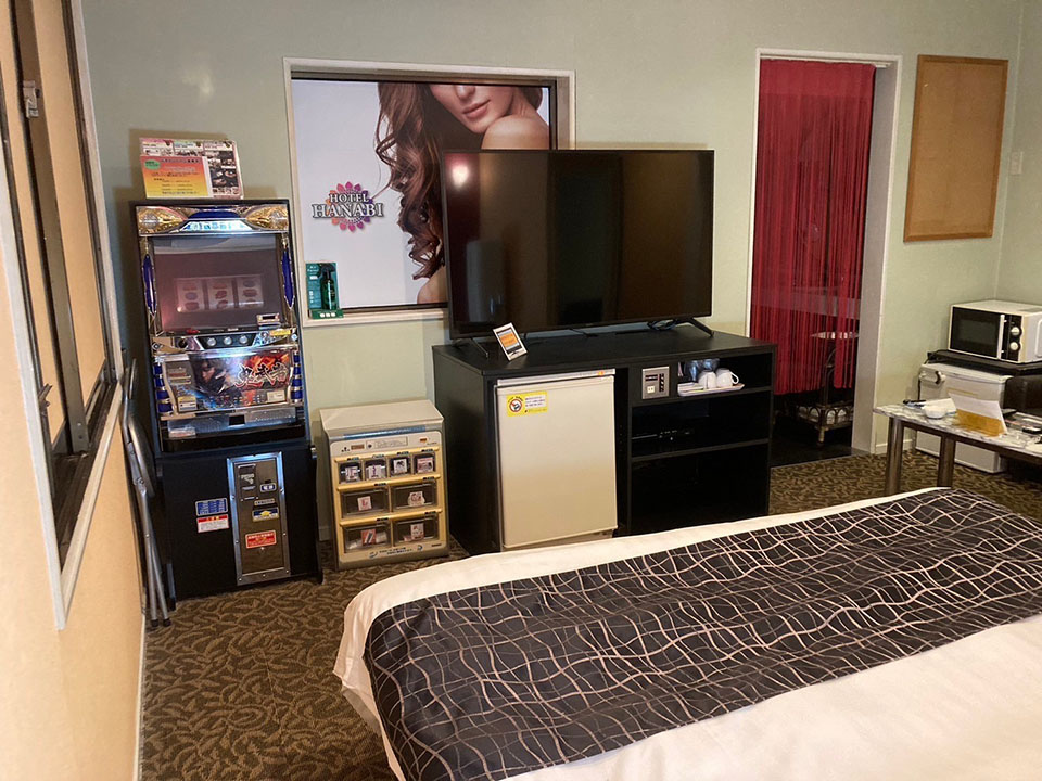 ROOM 102 A-type No.102設備 共通設備: NET-TV オーダーシステム システム冷蔵庫 コンビニBOX 電子レンジ 持込冷蔵庫 ハンドマッサージ機 空気清浄機 携帯充電器 DVDプレイヤー ラブマット ラブチェア 有線 ウォーターサーバー スロット 鏡 照明スイッチ(ベッドパネル) クリックすると大きな画像がポップアップします。