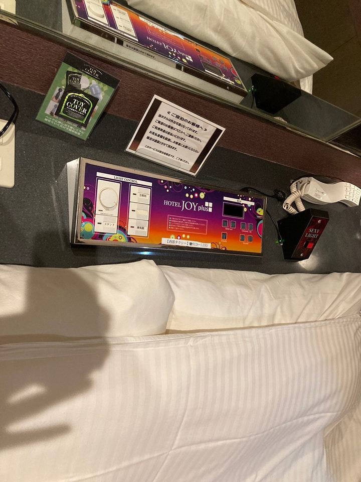 ROOM 217 C-type No.217設備 共通設備: NET-TV オーダーシステム 持込冷蔵庫 電子レンジ 電気ケトル ブルーレイプレイヤー ハンドマッサージ機 携帯充電器 空気清浄機 大型ベッド ウォーターサーバー 照明スイッチ(ベッドパネル) クリックすると大きな画像がポップアップします。