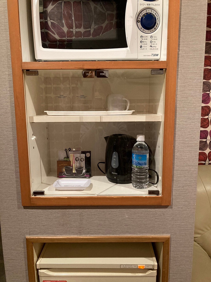 ROOM 218 C-type No.218設備 共通設備: NET-TV オーダーシステム 持込冷蔵庫 電子レンジ 電気ケトル DVDプレイヤー ハンドマッサージ機 空気清浄機 くるくるドライヤー ウォーターサーバー スロット 照明スイッチ(ベッドパネル) クリックすると大きな画像がポップアップします。