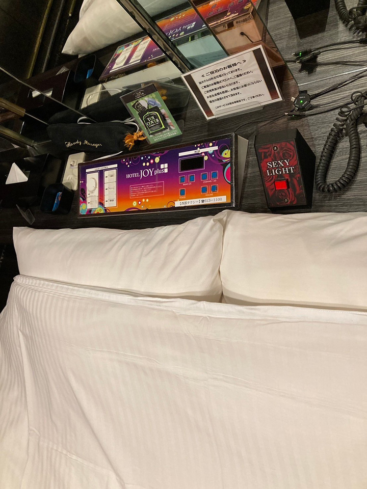 ROOM 222 C-type [SMルーム] No.222設備 共通設備: NET-TV オーダーシステム 持込冷蔵庫 電子レンジ 電気ケトル DVDプレイヤー ハンドマッサージ機 空気清浄機 くるくるドライヤー ウォーターサーバー SMルーム(X十字架)ドレッサー スロット 照明スイッチ(ベッドパネル) クリックすると大きな画像がポップアップします。