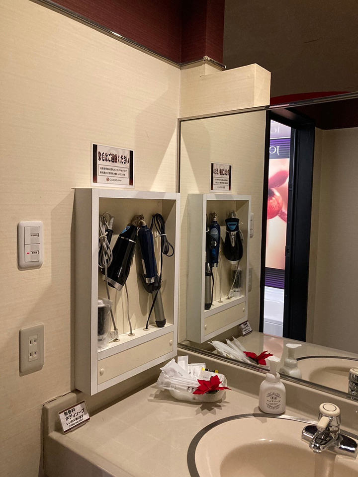 ROOM 226 C-type No.226設備 共通設備: NET-TV オーダーシステム 持込冷蔵庫 電子レンジ 電気ケトル DVDプレイヤー ハンドマッサージ機 空気清浄機 くるくるドライヤー ウォーターサーバー ドレッサースロット 照明スイッチ(ベッドパネル) クリックすると大きな画像がポップアップします。