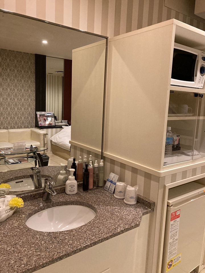 ROOM 230 D-type No.230設備 共通設備: NET-TV オーダーシステム 持込冷蔵庫 電子レンジ 電気ケトル DVDプレイヤー ハンドマッサージ機 空気清浄機 くるくるドライヤー ウォーターサーバー スロット鏡 照明スイッチ(ベッドパネル) クリックすると大きな画像がポップアップします。