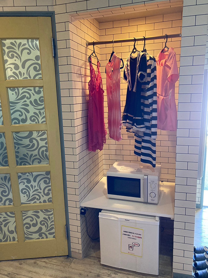 ROOM 201 B-type No.201設備 共通設備: NET-TV オーダーシステム コンビニBOX システム冷蔵庫 持込冷蔵庫 電子レンジ 電気ケトル DVDプレーヤー 電マ 携帯充電器 空気清浄機 ウォーターサーバー 特別設備: 55インチTV レインボーバブルバス コスプレルーム 鏡 スロット 照明スイッチ(ベッドパネル) クリックすると大きな画像がポップアップします。