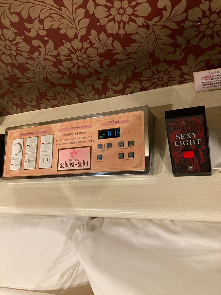 ROOM 108 B-type No.108設備 共通設備 65型NET-TV オーダーシステム カラオケ コンビニBOX システム冷蔵庫 持込冷蔵庫 電子レンジ ブルーレイプレイヤー ハンドマッサージ機 ウォーターサーバー 有線BGM 加湿器付空気清浄機 セクシーライト ホタル風呂 スロット(バジリスク) 照明スイッチ(ベッドパネル) クリックすると大きな画像がポップアップします。