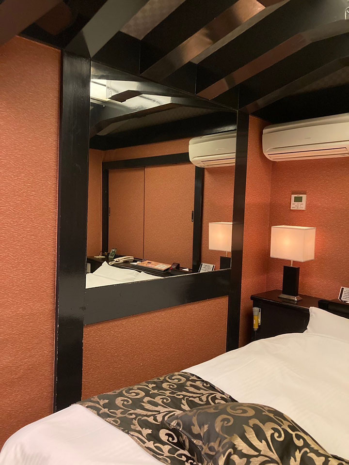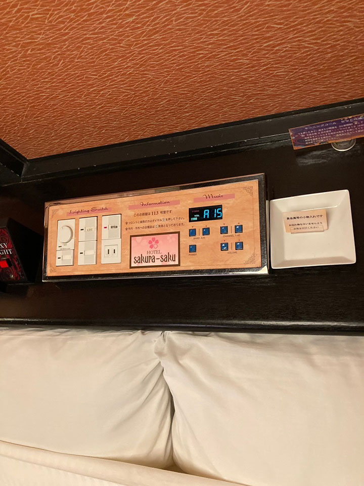 ROOM 113 B-type No.113設備 共通設備 65型NET-TV オーダーシステム カラオケ コンビニBOX システム冷蔵庫 持込冷蔵庫 電子レンジ ブルーレイプレイヤー ハンドマッサージ機 ウォーターサーバー 有線BGM 加湿器付空気清浄機 和室 ミニ花魁コスプレ ベッド両サイド鏡 セクシーライト 照明スイッチ(ベッドパネル) クリックすると大きな画像がポップアップします。