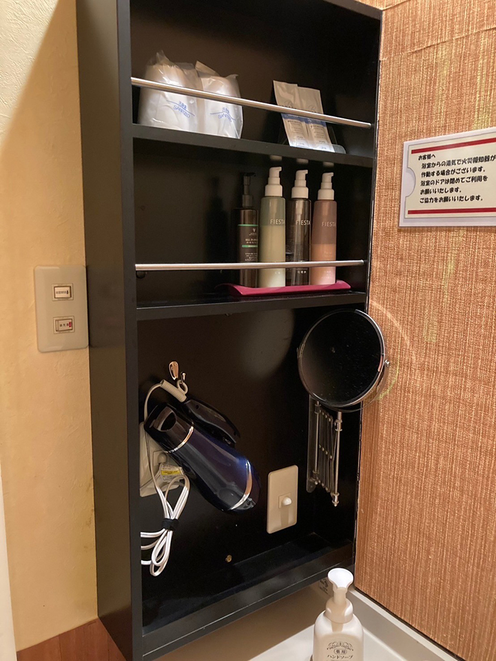 ROOM 101 B-type No.101設備 共通設備: NET-TV オーダーシステム 持込冷蔵庫 電子レンジ 電気ケトル DVDプレイヤー ハンドマッサージ機 空気清浄機 レインボージェットバス 照明スイッチ(ベッドパネル) クリックすると大きな画像がポップアップします。