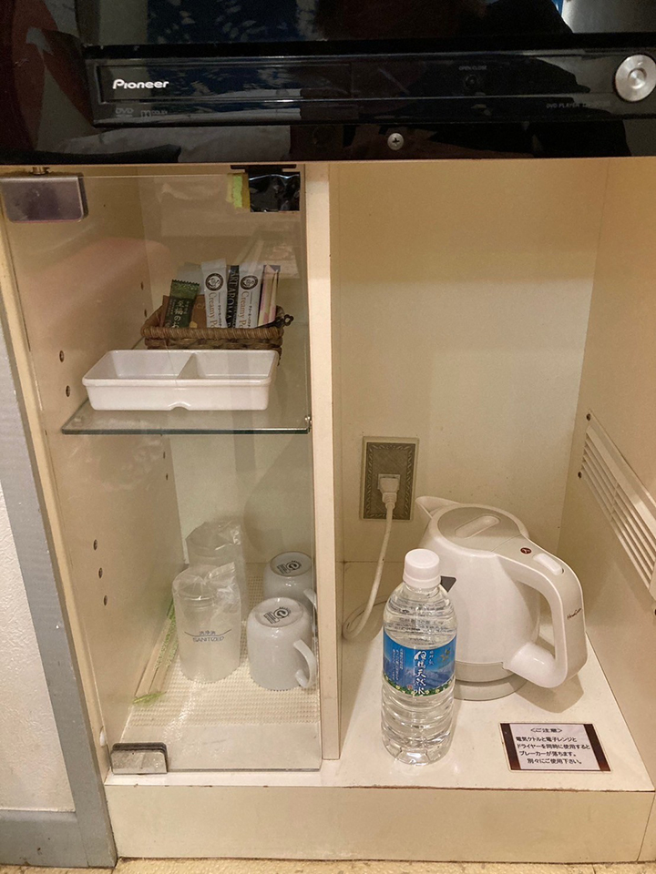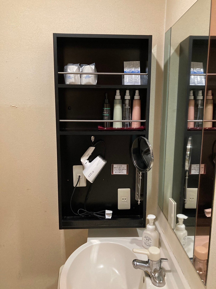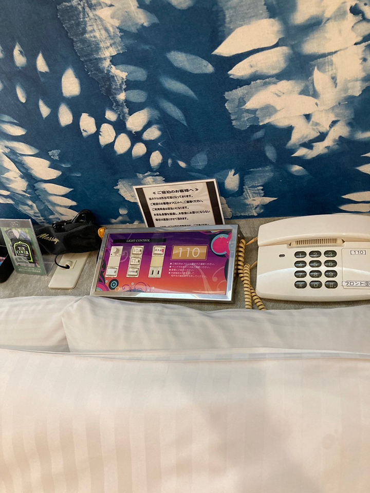 ROOM 110 A-type No.110設備 共通設備: NET-TV オーダーシステム 持込冷蔵庫 電子レンジ 電気ケトル DVDプレイヤー ハンドマッサージ機 空気清浄機 照明スイッチ(ベッドパネル) クリックすると大きな画像がポップアップします。