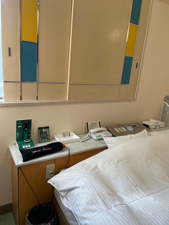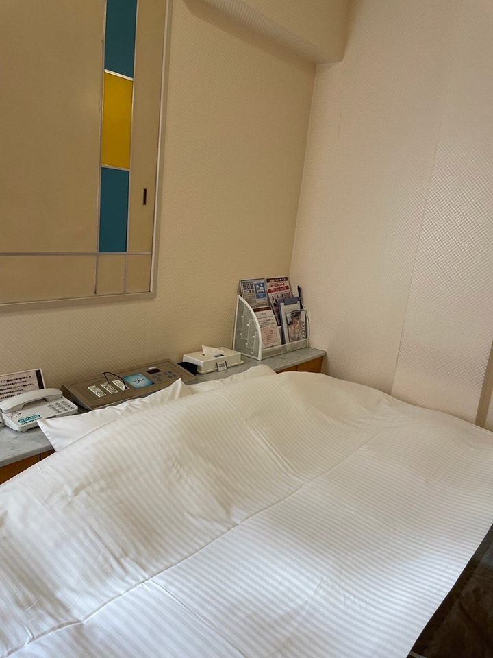ROOM 202 B-type No.202設備 共通設備: NET-TV オーダーシステム 持込冷蔵庫 電子レンジ ブルーレイプレイヤー ハンドマッサージ機 携帯充電器 空気清浄機 大型ベッド ウォーターサーバー フロントにアメニティーコーナーがあります 照明スイッチ(ベッドパネル) クリックすると大きな画像がポップアップします。