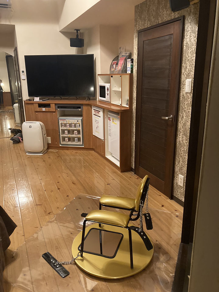 ROOM 107 E-type No.107設備 共通設備: NET-TV オーダーシステム コンビニBOX システム冷蔵庫 持込冷蔵庫 電子レンジ 電気ケトル DVDプレイヤー ハンドマッサージ機 VOD 空気清浄機 有線 ウォーターサーバー 加湿器付空気清浄機 携帯充電器 拘束椅子 セクシーライト マッサージチェア 浴室マット カラオケ ジェットバス スロット 照明スイッチ(ベッドパネル) クリックすると大きな画像がポップアップします。