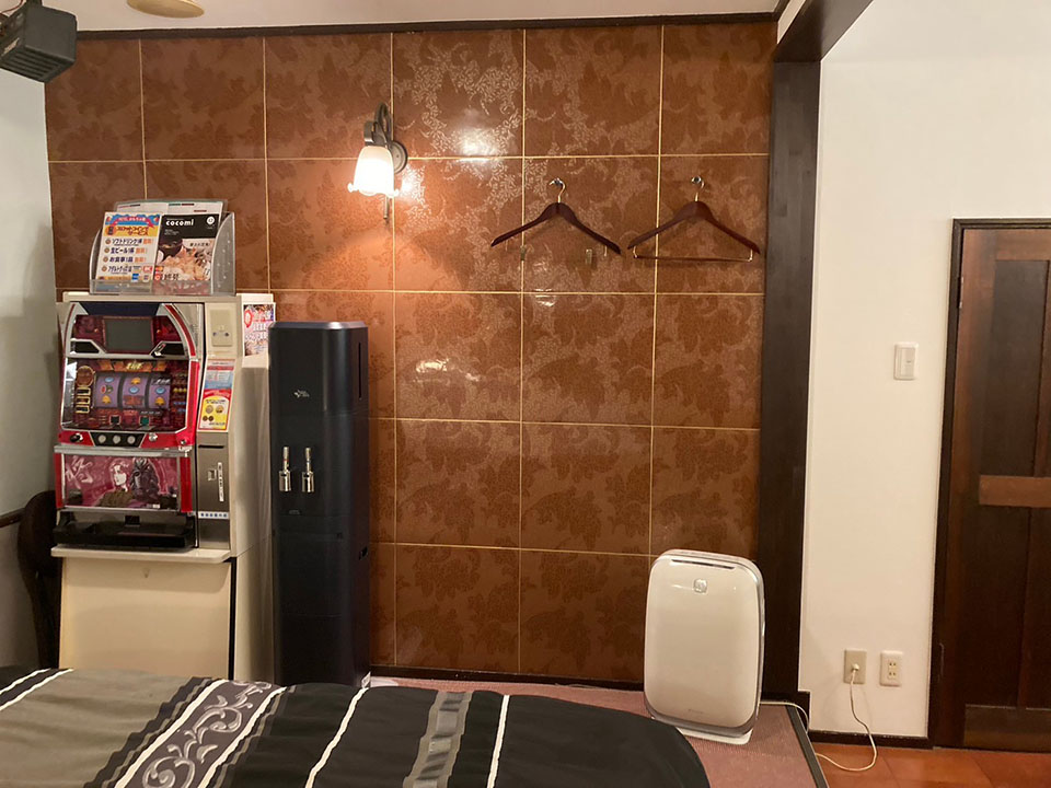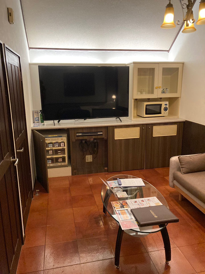 ROOM 108 E-type No.108設備 共通設備: NET-TV オーダーシステム コンビニBOX システム冷蔵庫 持込冷蔵庫 電子レンジ 電気ケトル DVDプレイヤー ハンドマッサージ機 VOD 空気清浄機 有線 ウォーターサーバー 加湿器付空気清浄機 携帯充電器 カラオケ セクシーライト スロット 照明スイッチ(ベッドパネル) クリックすると大きな画像がポップアップします。
