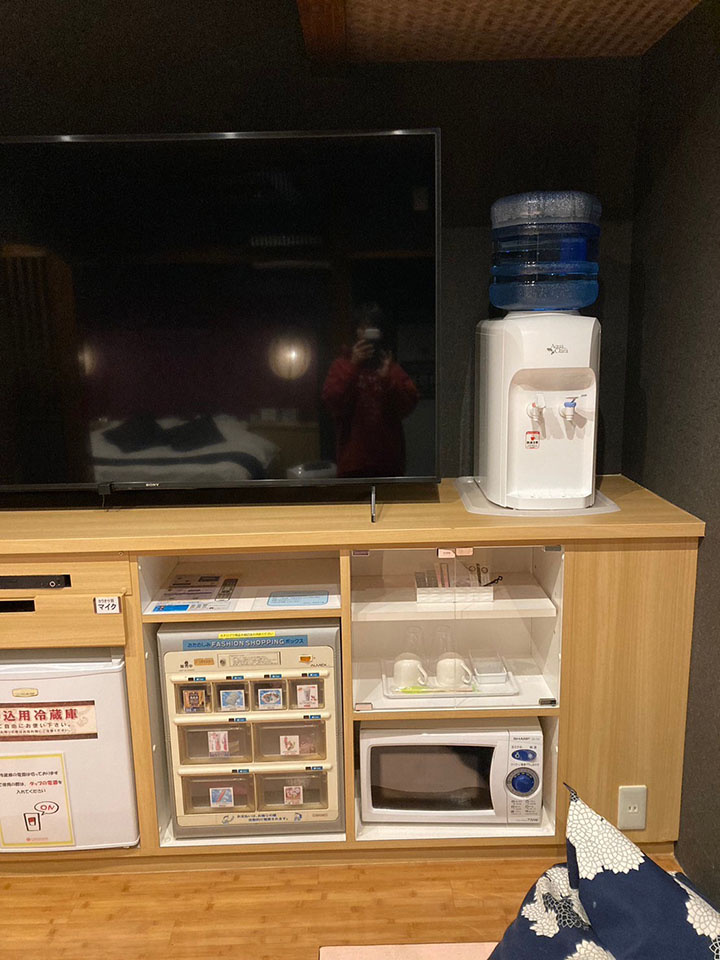 ROOM 208 D-type No.208設備 共通設備: NET-TV オーダーシステム コンビニBOX システム冷蔵庫 持込冷蔵庫 電子レンジ 電気ケトル DVDプレイヤー ハンドマッサージ機 VOD 空気清浄機 有線 ウォーターサーバー 加湿器付空気清浄機 携帯充電器 和室 カラオケ 天井鏡 ジェットバス 照明スイッチ(ベッドパネル) クリックすると大きな画像がポップアップします。