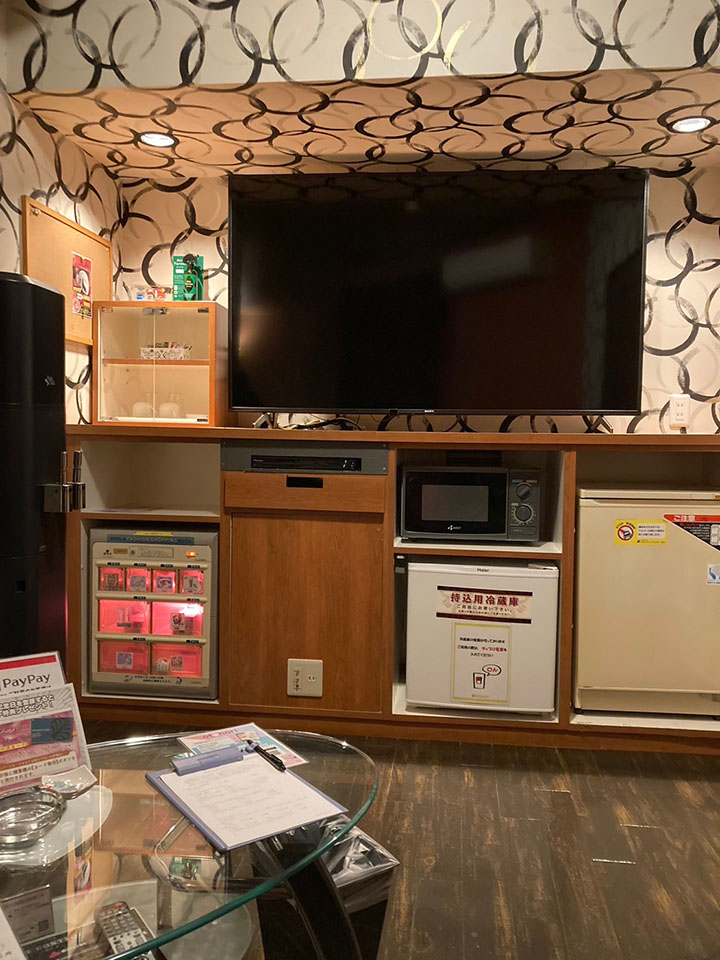 ROOM 211 A-type No.211設備 共通設備: NET-TV オーダーシステム コンビニBOX システム冷蔵庫 持込冷蔵庫 電子レンジ 電気ケトル DVDプレイヤー ハンドマッサージ機 VOD 空気清浄機 有線 ウォーターサーバー 加湿器付空気清浄機 携帯充電器 カラオケ ジェットバス 照明スイッチ(ベッドパネル) クリックすると大きな画像がポップアップします。