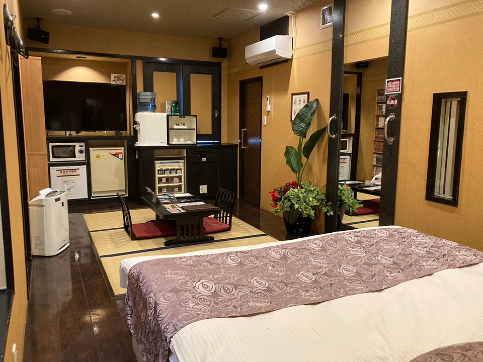 ROOM 215 D-type No.215設備 共通設備: NET-TV オーダーシステム コンビニBOX システム冷蔵庫 持込冷蔵庫 電子レンジ 電気ケトル DVDプレイヤー ハンドマッサージ機 VOD 空気清浄機 有線 ウォーターサーバー 加湿器付空気清浄機 携帯充電器 和室 SM コミック セクシーライト セクシーボイス SMラブバックミラー カラオケ ジェットバス 照明スイッチ(ベッドパネル) クリックすると大きな画像がポップアップします。