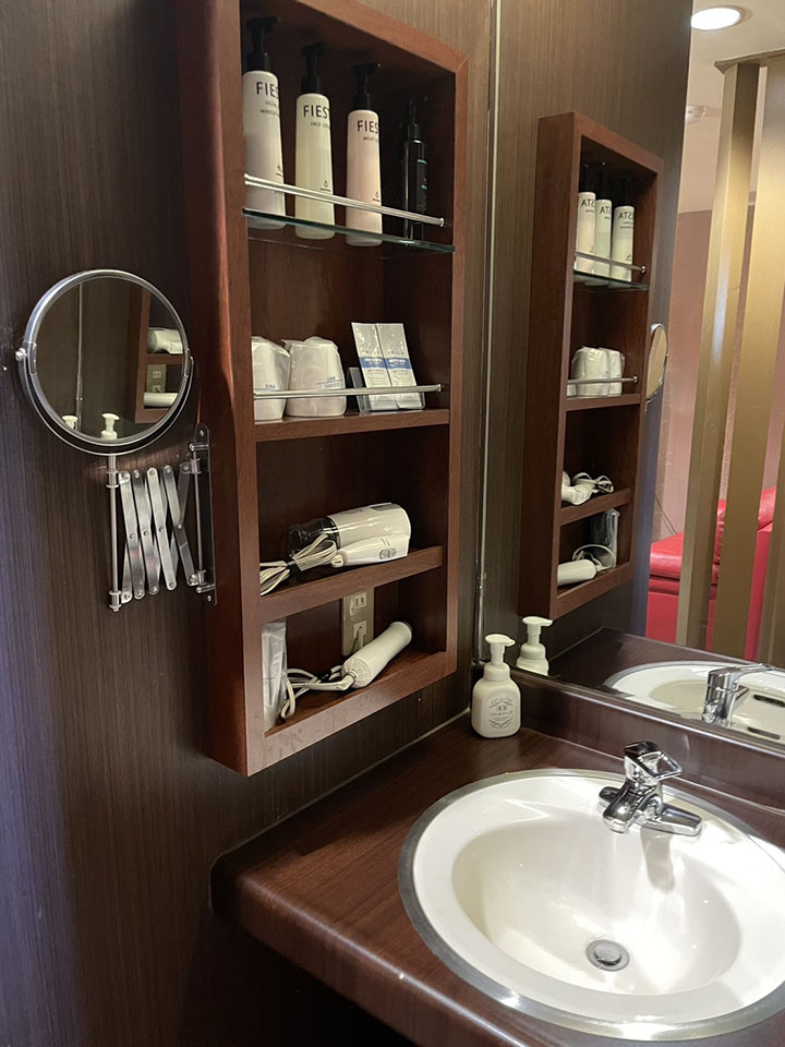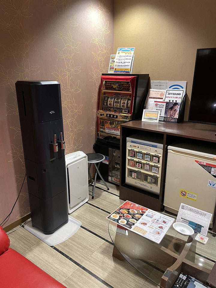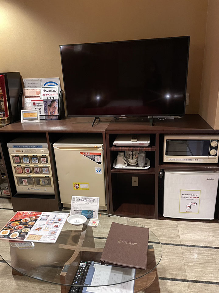 ROOM 101 A-type No.101設備 共通設備: NET-TV オーダーシステム コンビニBOX システム冷蔵庫 持込冷蔵庫 電子レンジ 電気ケトル DVDプレイヤー ハンドマッサージ機 携帯充電器 空気清浄機 ウォーターサーバー スロット 照明スイッチ(ベッドパネル) クリックすると大きな画像がポップアップします。