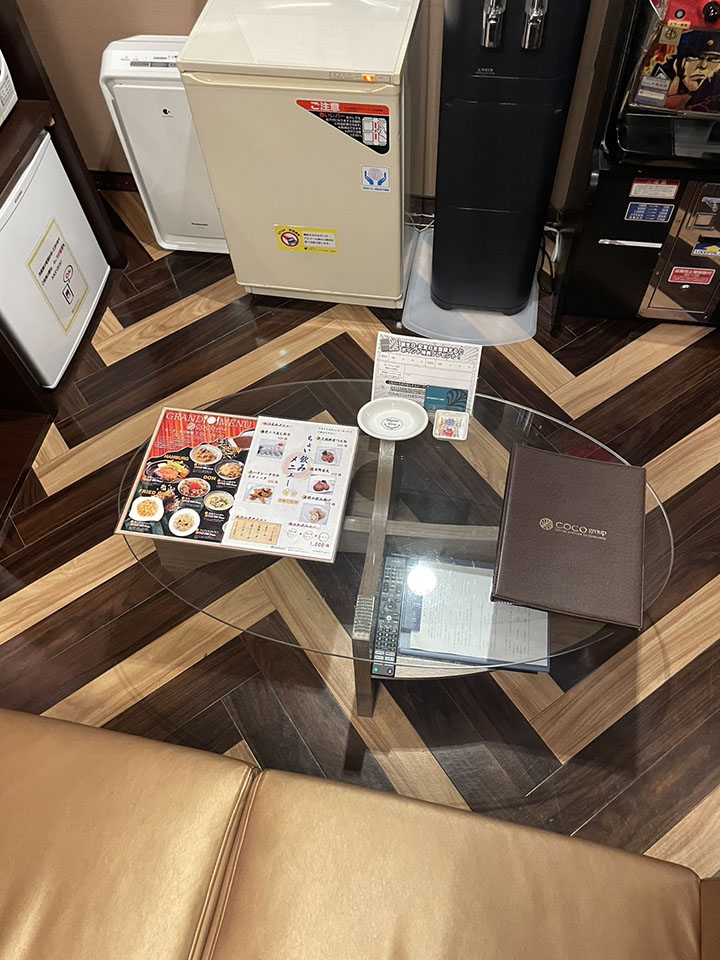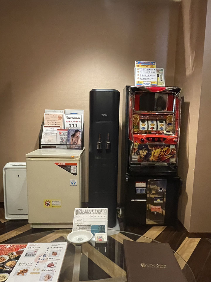 ROOM 102 A-type No.102設備 共通設備: NET-TV オーダーシステム コンビニBOX システム冷蔵庫 持込冷蔵庫 電子レンジ 電気ケトル DVDプレイヤー ハンドマッサージ機 携帯充電器 空気清浄機 ウォーターサーバー スロット 照明スイッチ(ベッドパネル) クリックすると大きな画像がポップアップします。