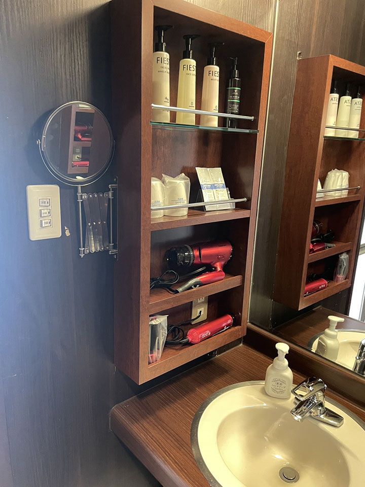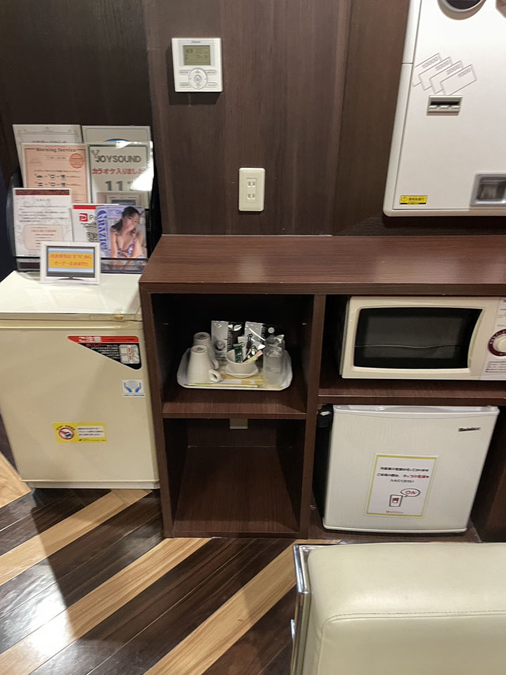 ROOM 106 A-type No.106設備 共通設備: NET-TV オーダーシステム コンビニBOX システム冷蔵庫 持込冷蔵庫 電子レンジ 電気ケトル DVDプレイヤー ハンドマッサージ機 携帯充電器 空気清浄機 ウォーターサーバー スロット 照明スイッチ(ベッドパネル) クリックすると大きな画像がポップアップします。