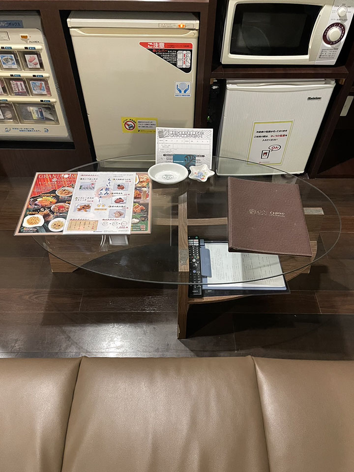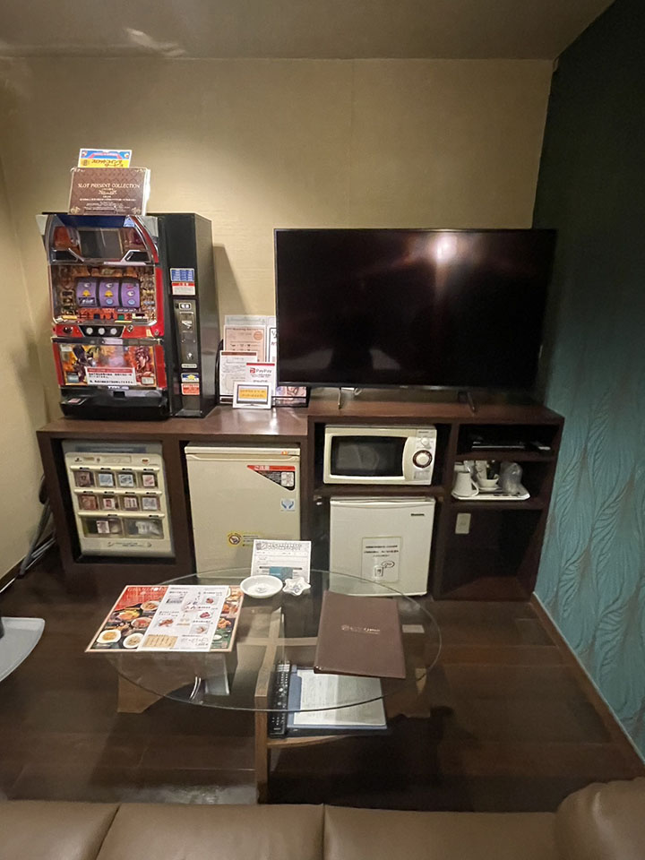 ROOM 107 A-type No.107設備 共通設備: NET-TV オーダーシステム コンビニBOX システム冷蔵庫 持込冷蔵庫 電子レンジ 電気ケトル DVDプレイヤー ハンドマッサージ機 携帯充電器 空気清浄機 ウォーターサーバー スロット 照明スイッチ(ベッドパネル) クリックすると大きな画像がポップアップします。