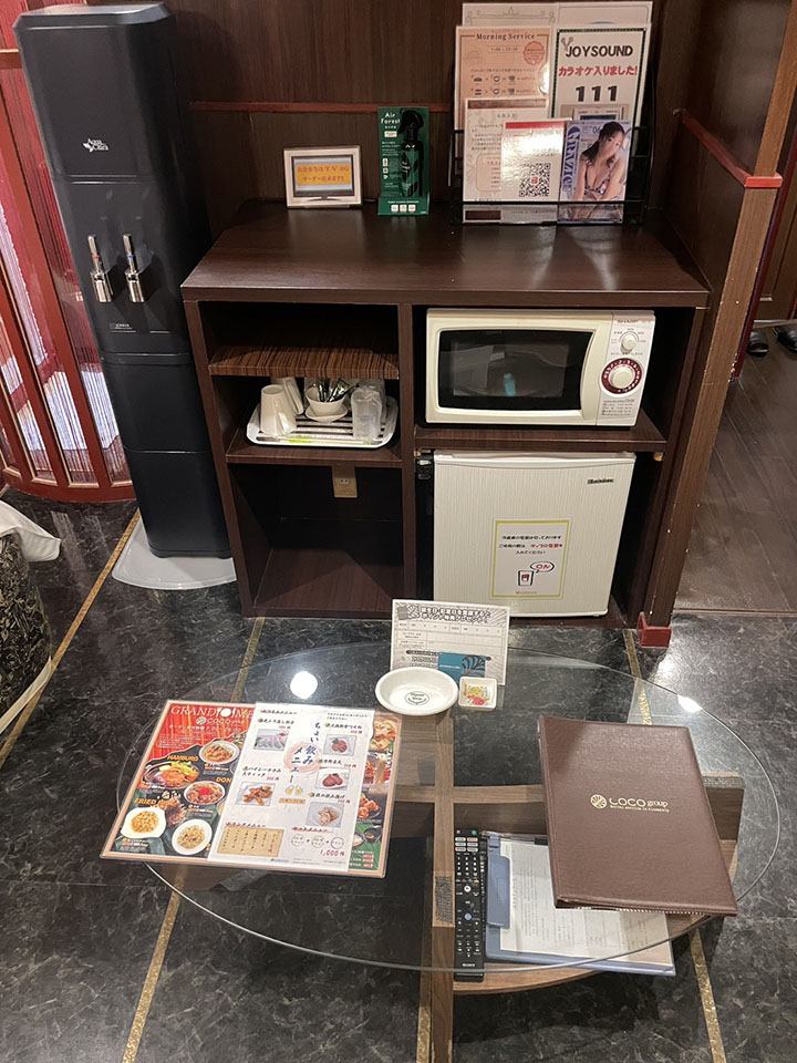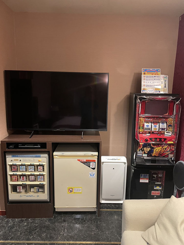 ROOM 108 A-type No.108設備 共通設備: NET-TV オーダーシステム コンビニBOX システム冷蔵庫 持込冷蔵庫 電子レンジ 電気ケトル DVDプレイヤー ハンドマッサージ機 携帯充電器 空気清浄機 ウォーターサーバー スロット 照明スイッチ(ベッドパネル) クリックすると大きな画像がポップアップします。