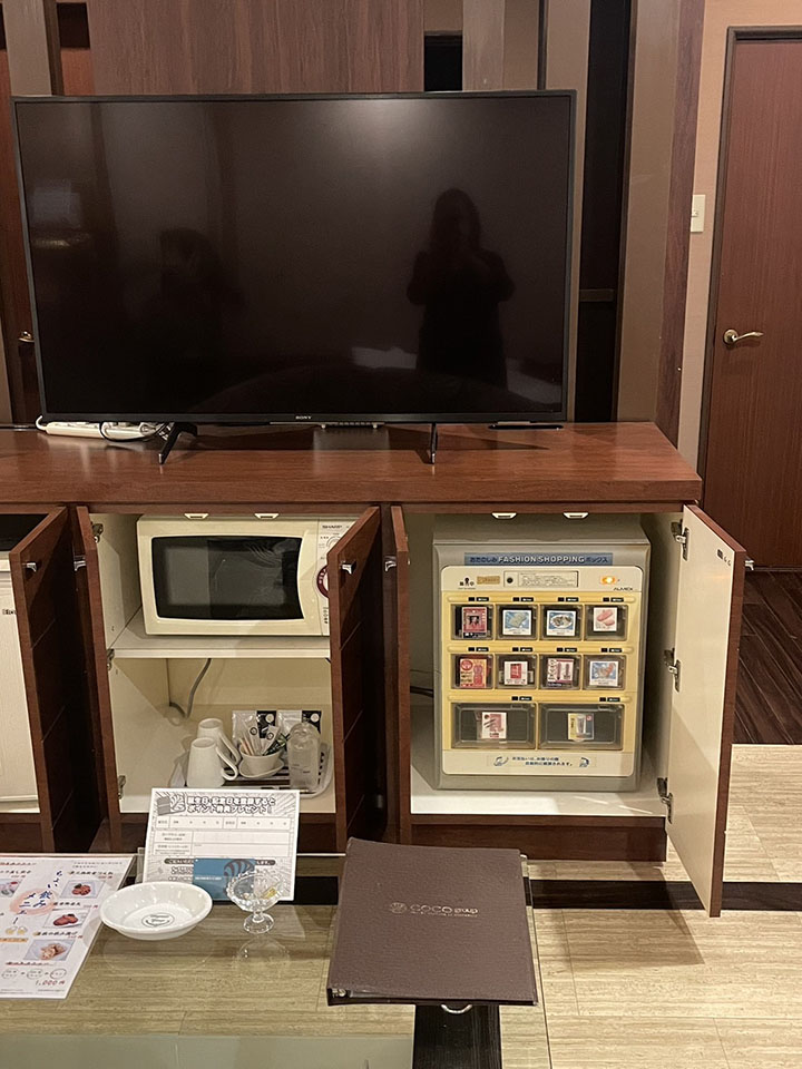 ROOM 113 B-type No.113設備 共通設備: NET-TV オーダーシステム コンビニBOX システム冷蔵庫 持込冷蔵庫 電子レンジ 電気ケトル DVDプレイヤー ハンドマッサージ機 携帯充電器 空気清浄機 ウォーターサーバー マッサージチェア 岩風呂 スロット 照明スイッチ(ベッドパネル) クリックすると大きな画像がポップアップします。